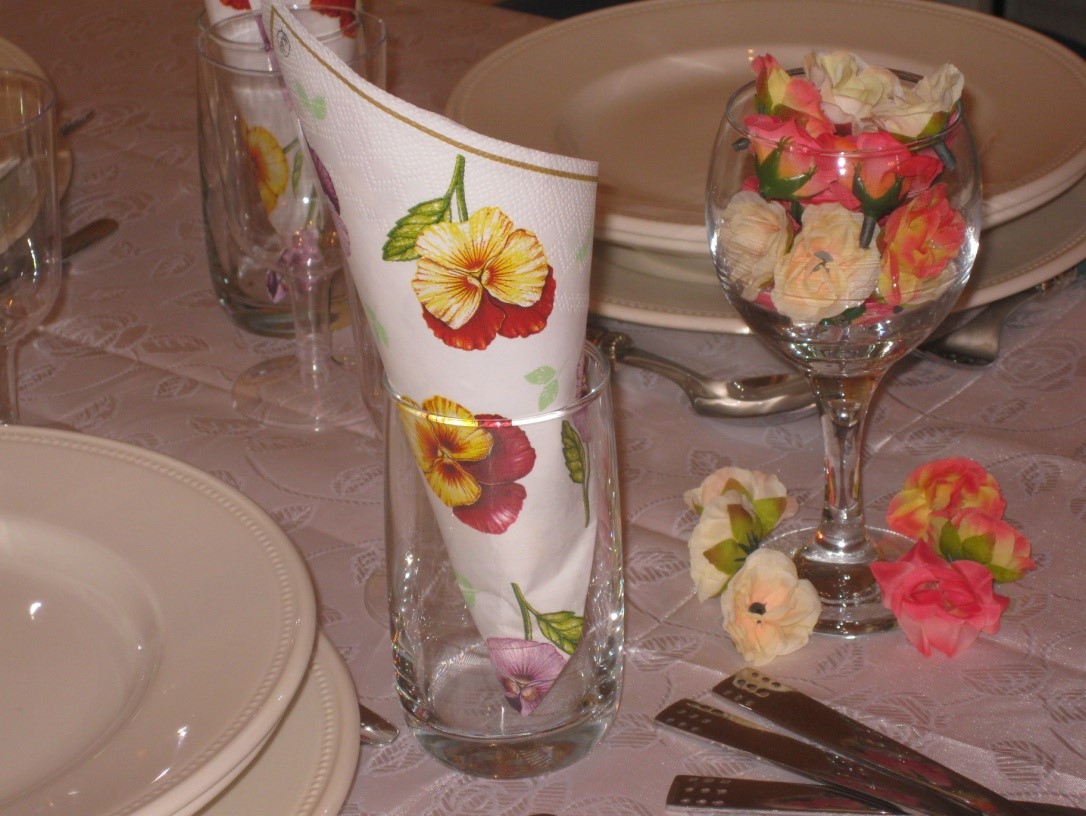 צלחות למנה ראשונה ומנה עיקרית, סכום ממתכת, כוס זכוכית לשתייה קרה